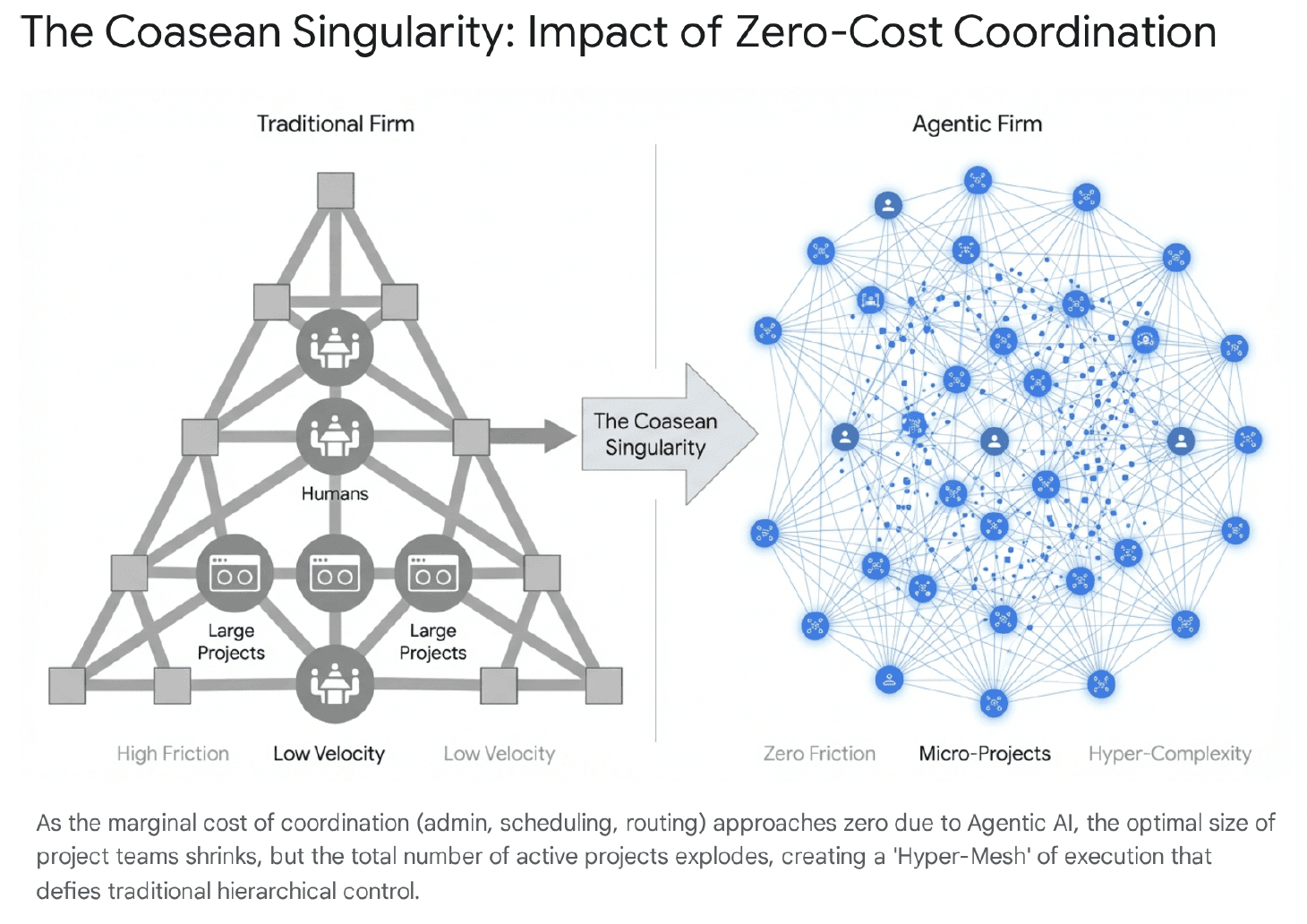 So yes, “coordination” becomes cheaper in one sense. But the enterprise replaces it with a new class of coordination around intent, safety, and economics. That is still a singularity. It is just not free.